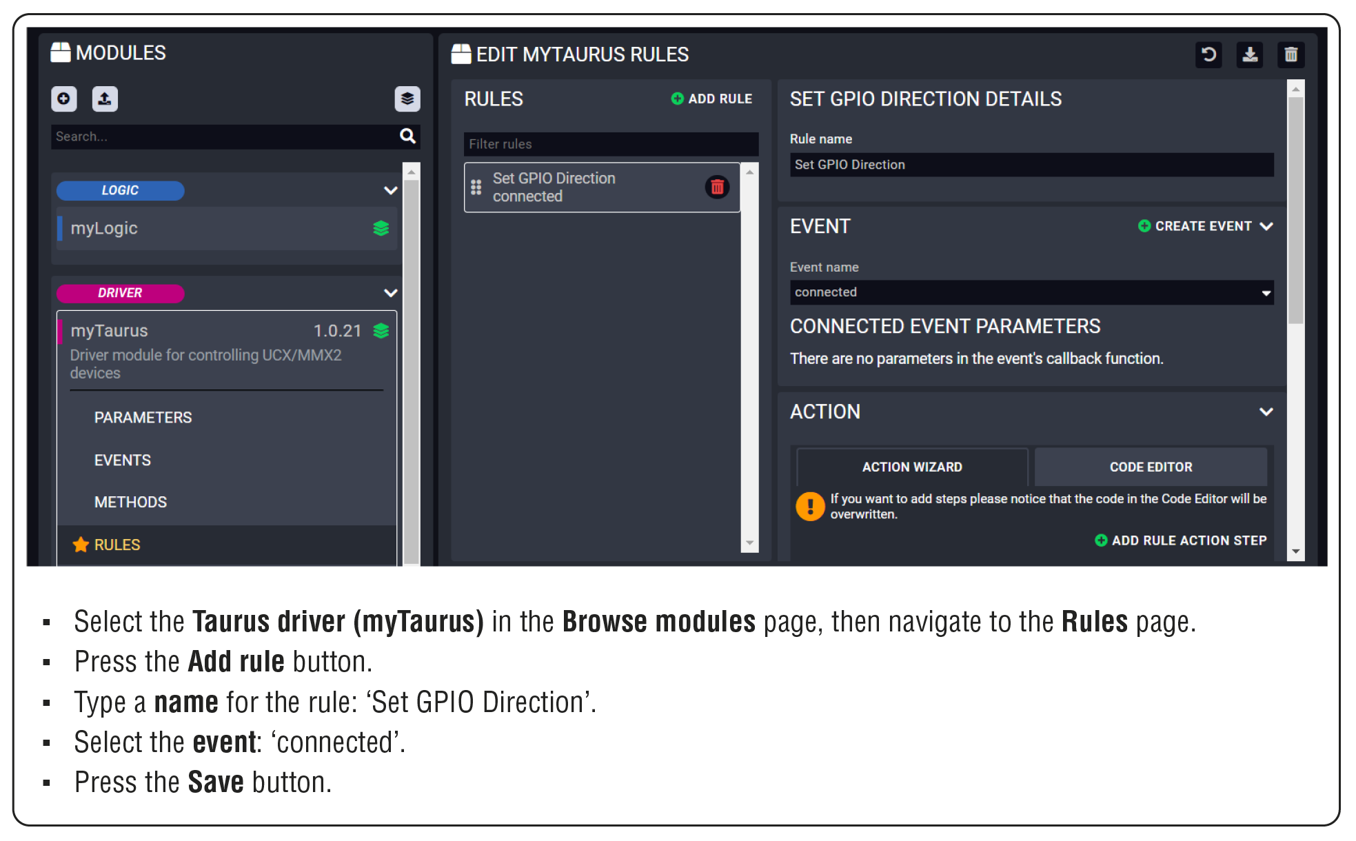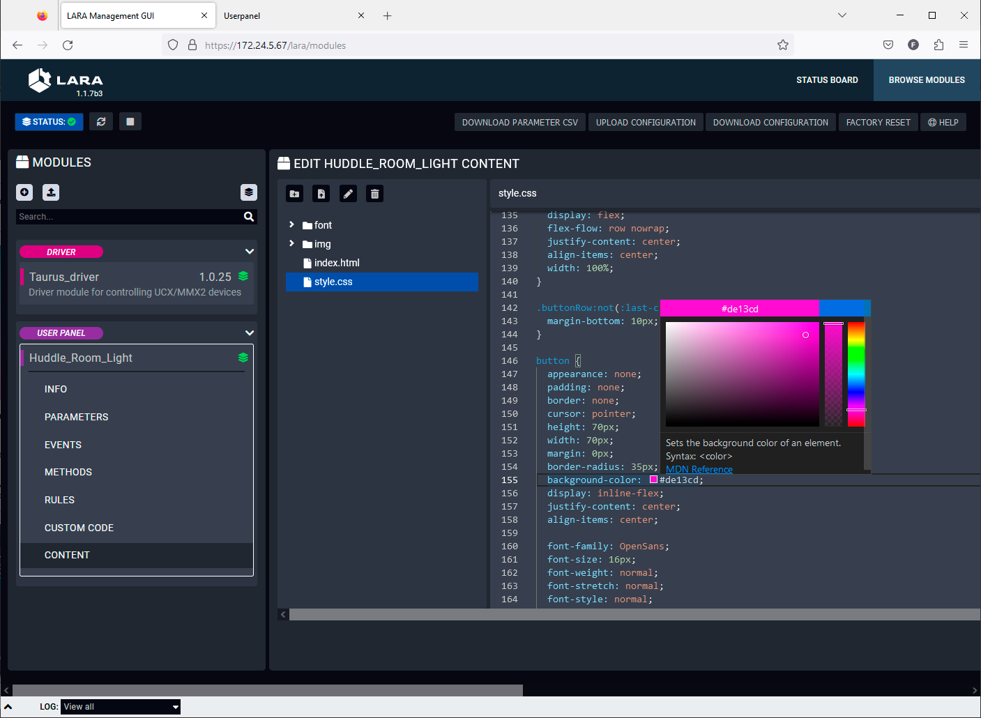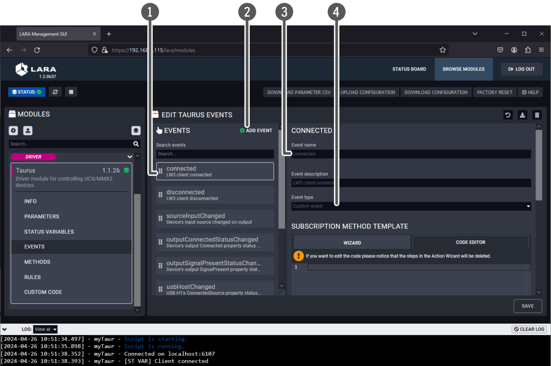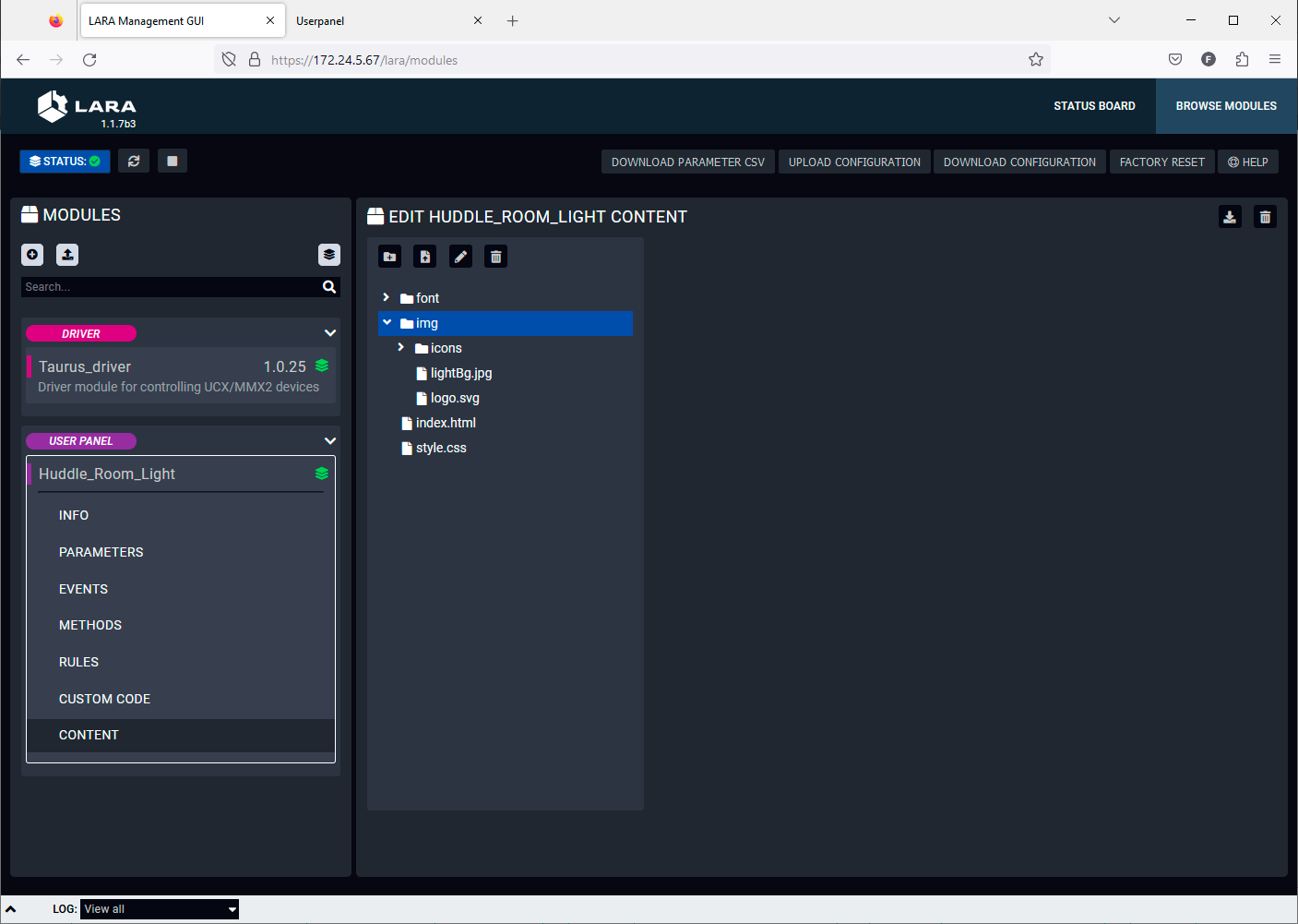 With LARA, you can automate your meeting rooms, create or re-use software Modules by using the power of JavaScript, control the behavior of the Taurus and connect it to other third-party devices or services, or do virtually everything that is possible.