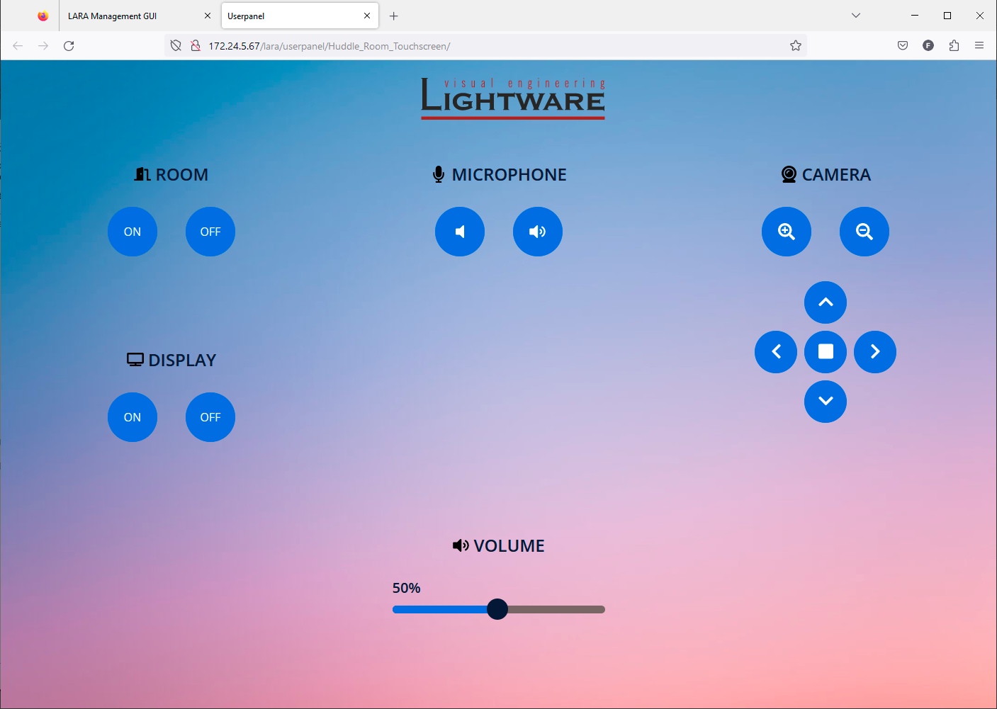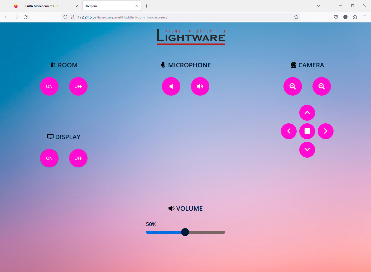 LARA is a software platform that has been designed mainly for controlling meeting rooms. While developing LARA, the experiences of the popular Event Manager - which can be found in numerous Lightware devices - have been applied. The platform is designed and developed by Lightware Visual Engineering.