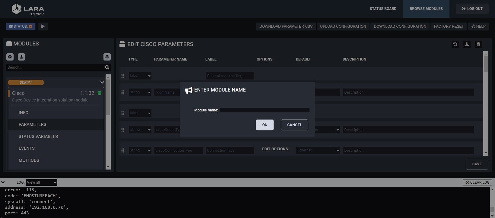 ▪Cisco module updated with new codec types and extended operating modes. Integration parameter names and options changed based on integrators' feed-backs for better understanding. For details please find the Application Notes and Module Info page in LARA.