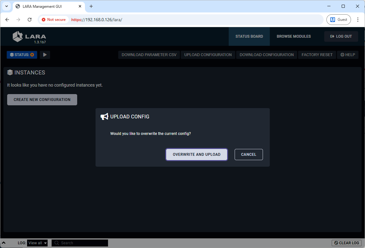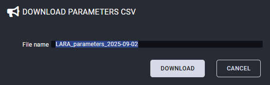 The full LARA configuration can be downloaded as a ZIP file. The file can be uploaded to the same device or to another device of the same type. |