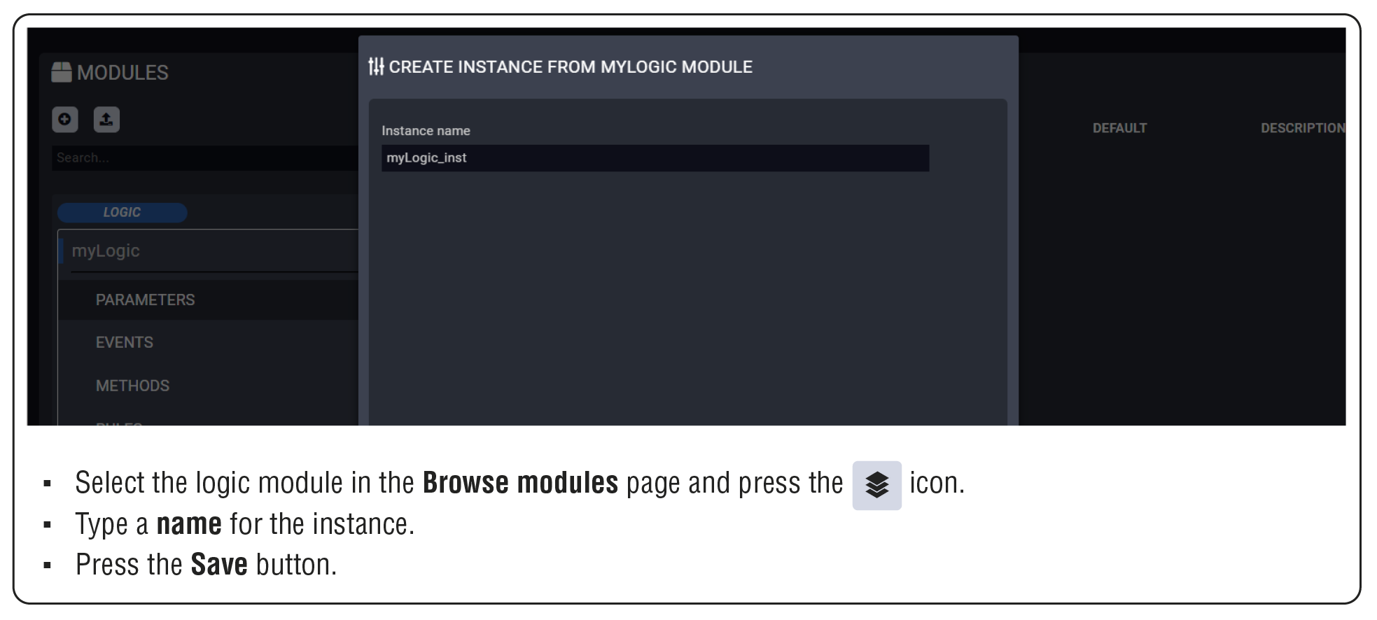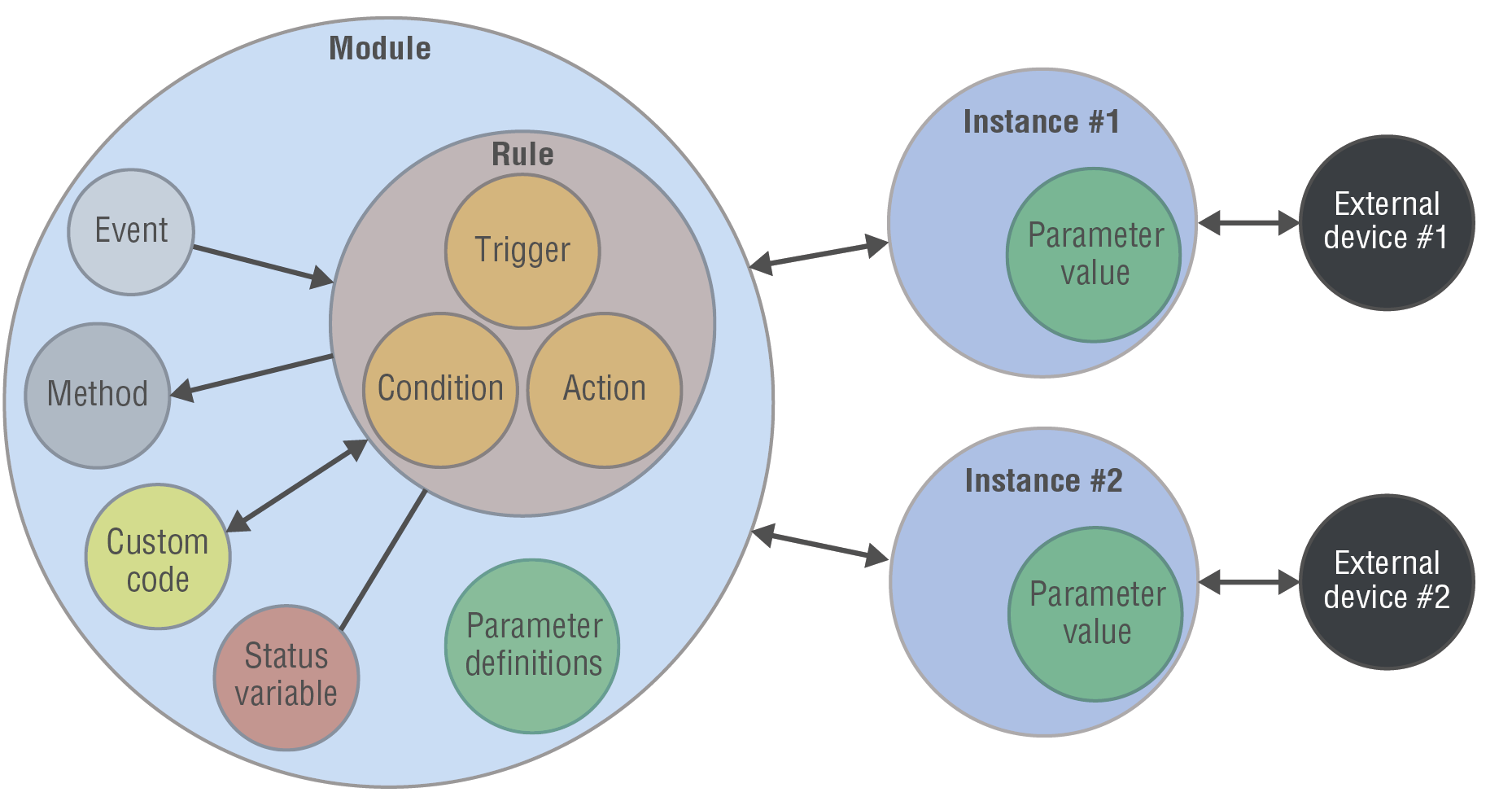 ▪A connected or an external device can be accessed via an Instance. (See more information about the Instances in the Modules and Instances section.)