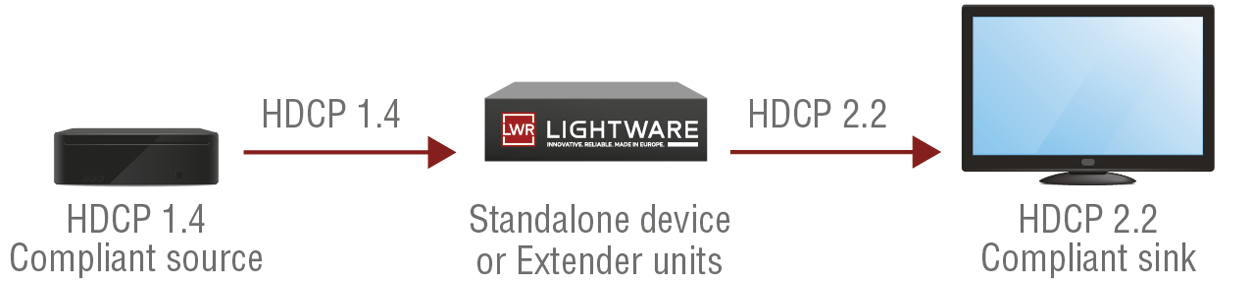 ▪From this version on, the HDCP is reported as not supported towards a source connected to a TX device when the supported HDCP version of the sink connected to the RX unit cannot be determined.
