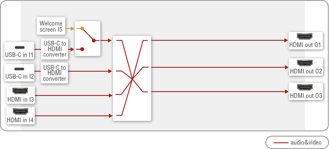 Lightware’s universal switcher enhances and extends the possibilities of a meeting room and allows meeting participants to easily use their own devices such as laptops and preferred video conference platforms, while also utilizing the available assets of the meeting space, for example HDMI displays, room cameras and other USB peripherals.